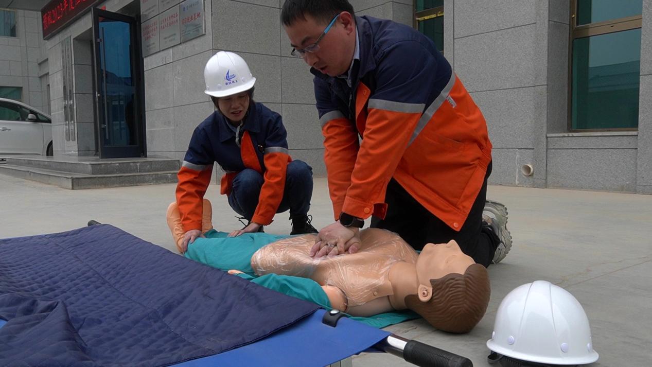 上午9時30分,現(xiàn)場巡檢人員向應急演練總指揮報告檔案資料突發(fā)大火,人資培訓公司2023年度消防安全應急演練拉開序幕。通訊聯(lián)絡人員立即撥打119及120,并進行火災位置指引。緊急疏散組根據(jù)現(xiàn)場風向確定疏散位置,即刻組織辦公樓人員立即從安全通道有序疏散,現(xiàn)場應急組確定救援路線,正確佩戴空呼器,抬擔架進行傷者救援。現(xiàn)場醫(yī)療救護組對傷員立即進行心肺復蘇操作,現(xiàn)場滅火組手持滅火器對火災發(fā)生位置進行滅火操作。隨著清點人數(shù),層層上報,全體員工安全疏散,總指揮宣布此次應急演練結束。