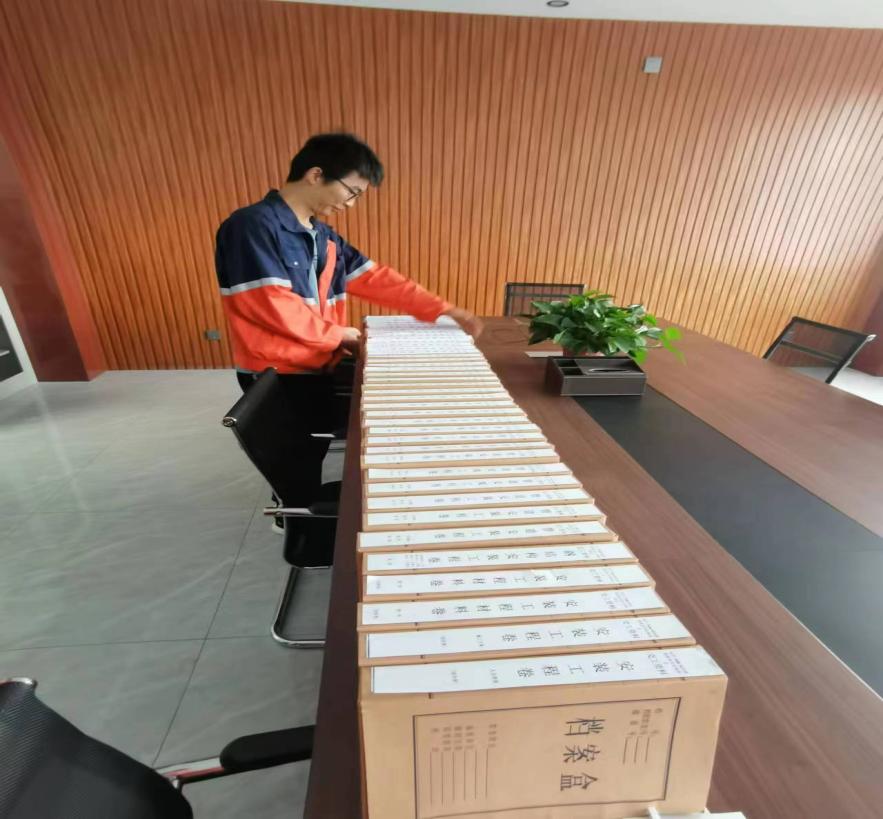 組卷過程中所有人員分工明確、責(zé)任到人,歷時一周時間大家齊心協(xié)力最終高標準完成電氣、自控、設(shè)備、管道、結(jié)構(gòu)、防腐絕熱,施工過程和交工技術(shù)文件資料共計53冊。經(jīng)監(jiān)理單位檢查驗收合格后組織施工單位移交建設(shè)單位存檔。